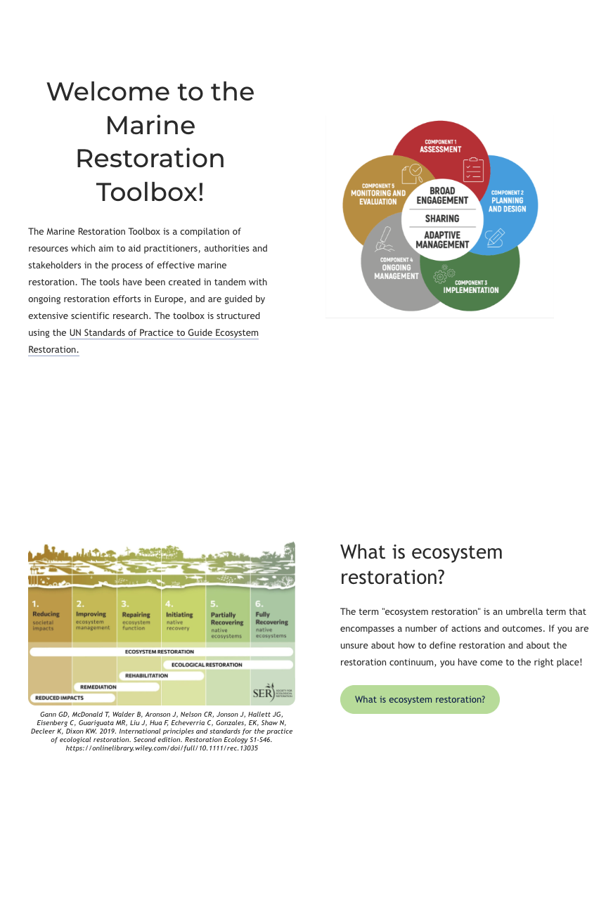 A comprehensive compilation of resources designed to aid practitioners, authorities, and stakeholders in the process of effective marine restoration. Created in tandem with ongoing restoration efforts across Europe and guided by extensive scientific research, the toolbox is structured using the UN Standards of Practice to Guide Ecosystem Restoration.